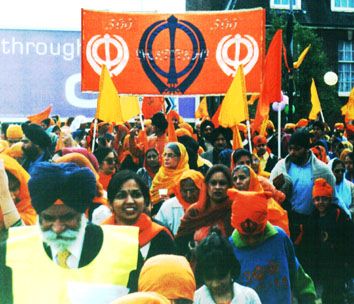 Some of the 60,000 Gur-Sikhs who took part in the Nagar Kirtan.
