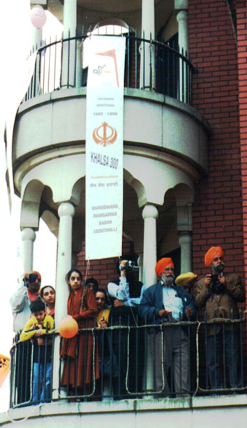 To give strength and encouragement to all Gur-Sikhs attending the Nagar Kirtan (procession), two Khalsa Panthies, young and old, in front of the Panj Piares, start the Nagar Kirtan on Sunday 11th April 1999 from Gurdwara Sri Guru Singh Sabha, Havelock Road, Southall.